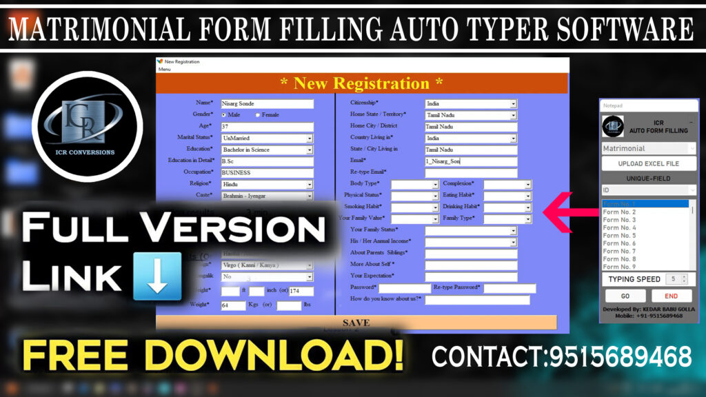 Matrimonial Form Filling Auto Typing Software Download For Free and install form filling auto typer software in your pc,